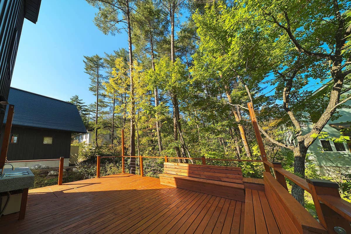 Cherrywoods Place offers 2 bedrooms and 1 bunk bedroom, comfortably sleeping up to 8 guests. A second-floor veranda overlooks the trees, and a spacious 30sqm private outdoor deck is perfect for summer BBQs or relaxing in fresh alpine air.