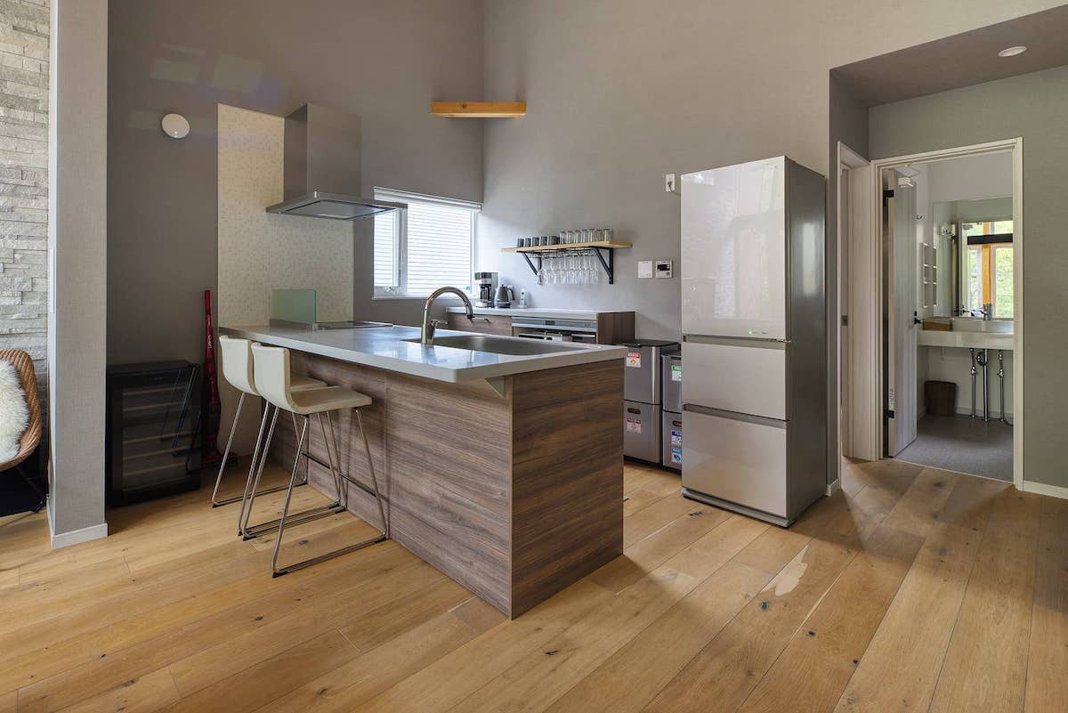 Underfloor heating throughout keeps the chalet cozy. The kitchen is fully equipped with Western appliances. There’s also a dedicated dryroom for skis & snowboard. A comfortable open living space makes it ideal for families and friends to relax after a day in Hakuba.