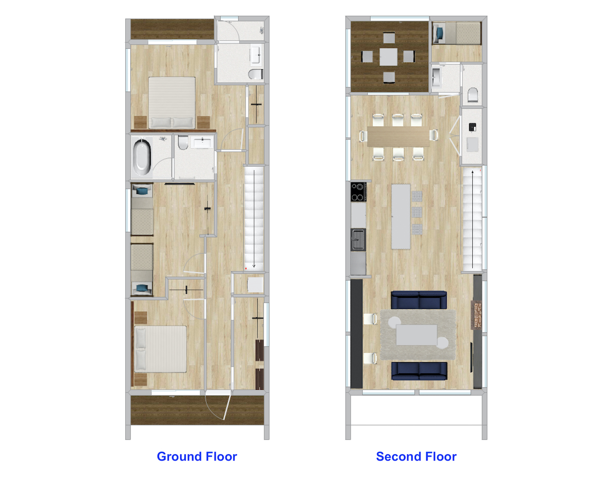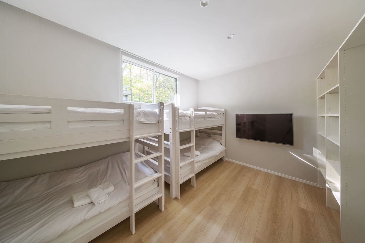 - 4ベッドルーム: 2つのキングルームまたはシングルルーム、1つの二段ベッドルーム、1つの小さな部屋・手伝い屋さん部屋
