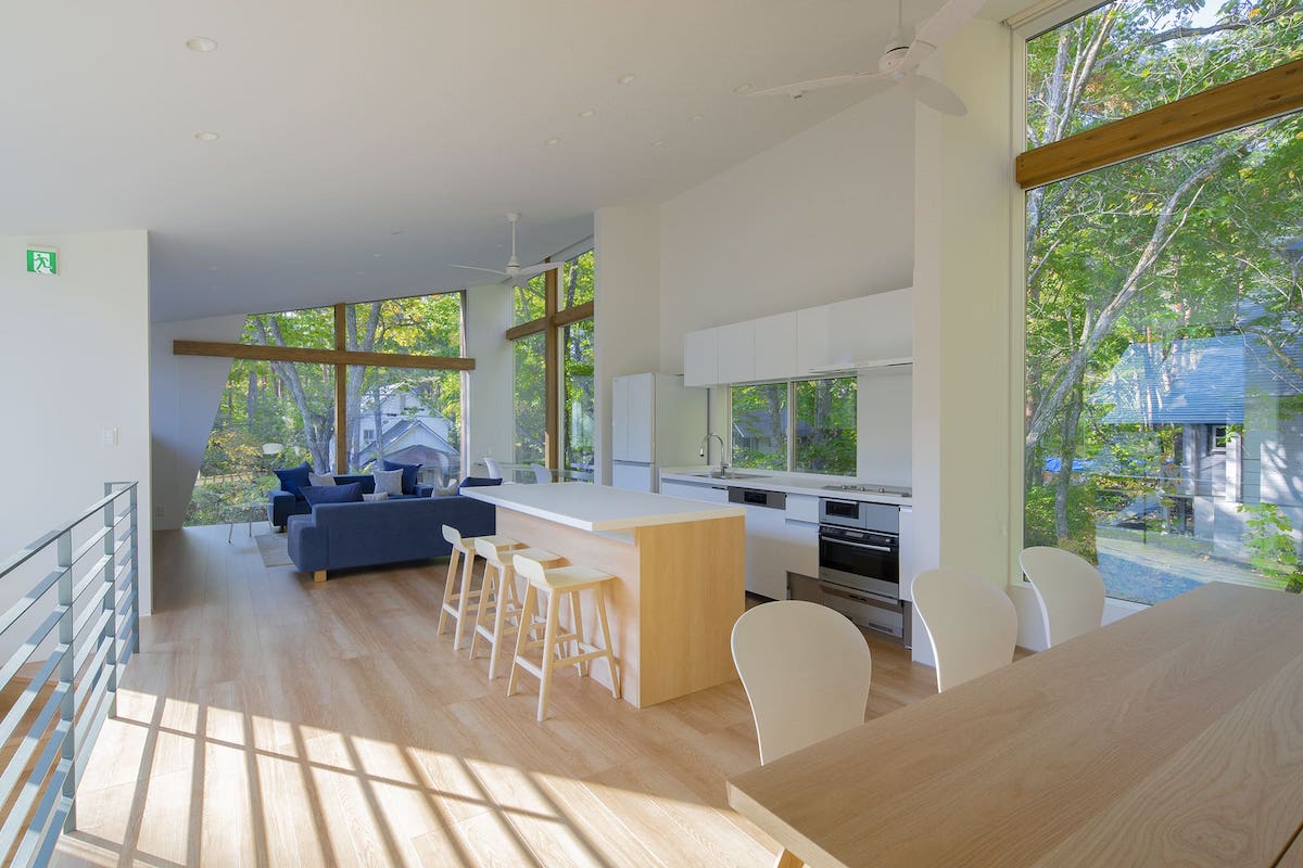 - 配された天井まで一面に広がる大きな窓